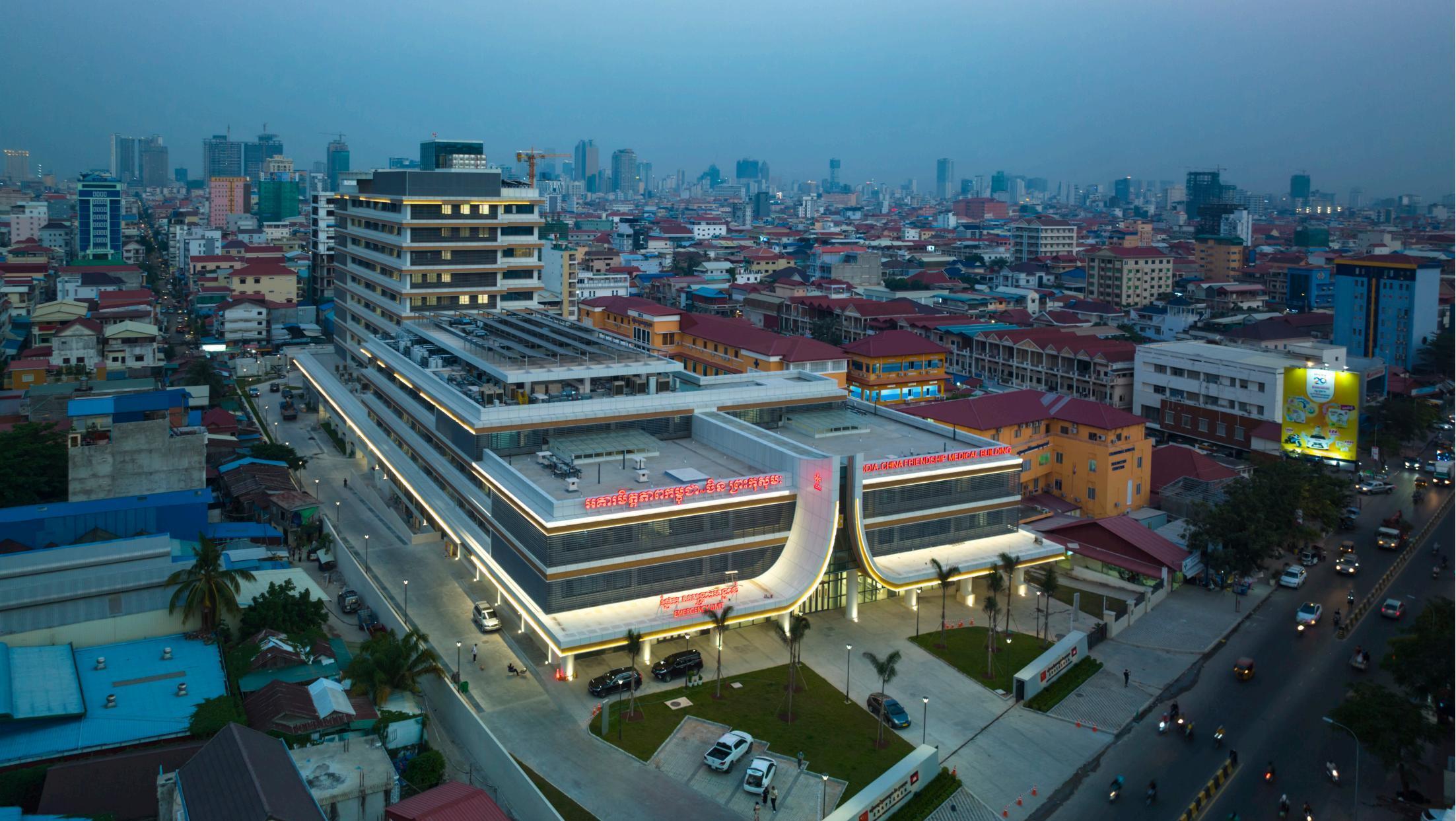 以外科为主的综合教学医院医疗大楼,设计以创新为先导,践行碳中和理念,公共空间的开敞区域比例达40%,同时采用系列绿色技术手段,打造一所“低能耗、高品质”的现代医院。作为中国对外援助医院中首个采用国际标准进行建设的医院,建成后将是柬最现代化的公立医院,成为促进中柬两国人民友谊的一项健康标杆工程。